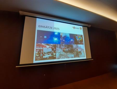 Oberbrandinspektor Philipp Schaden bei der Wehrversammlung am 5. Jänner 2026 in