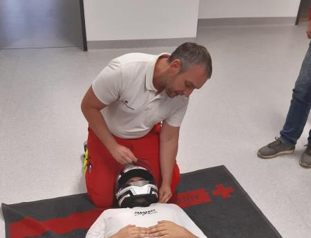 Zusätzlich wurde noch das richtige Abnehmen des Helmes bei Motorradunfällen besprochen und beübt, sowie die Bergung einer verletzten Person aus Fahrzeugen. Auch die mögliche Handhabung beim Verschlucken wurde noch gesondert besprochen und dabei sind folgende Punkte zu beachten: